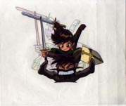 | Orson was by far my favorite character from Lodoss. He was just so sweet and tragic and dangerous, all at the same time. I just had to have a cel of him. Bought from a private dealer. |